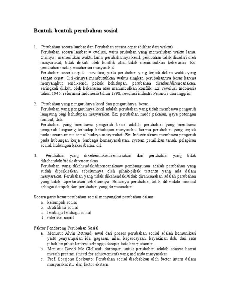 Sebutkan dan beri contoh masing masing bentuk perubahan sosial …