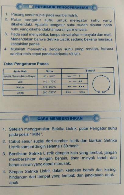 Petunjuk Penggunaan Setrika Listrik – Bah