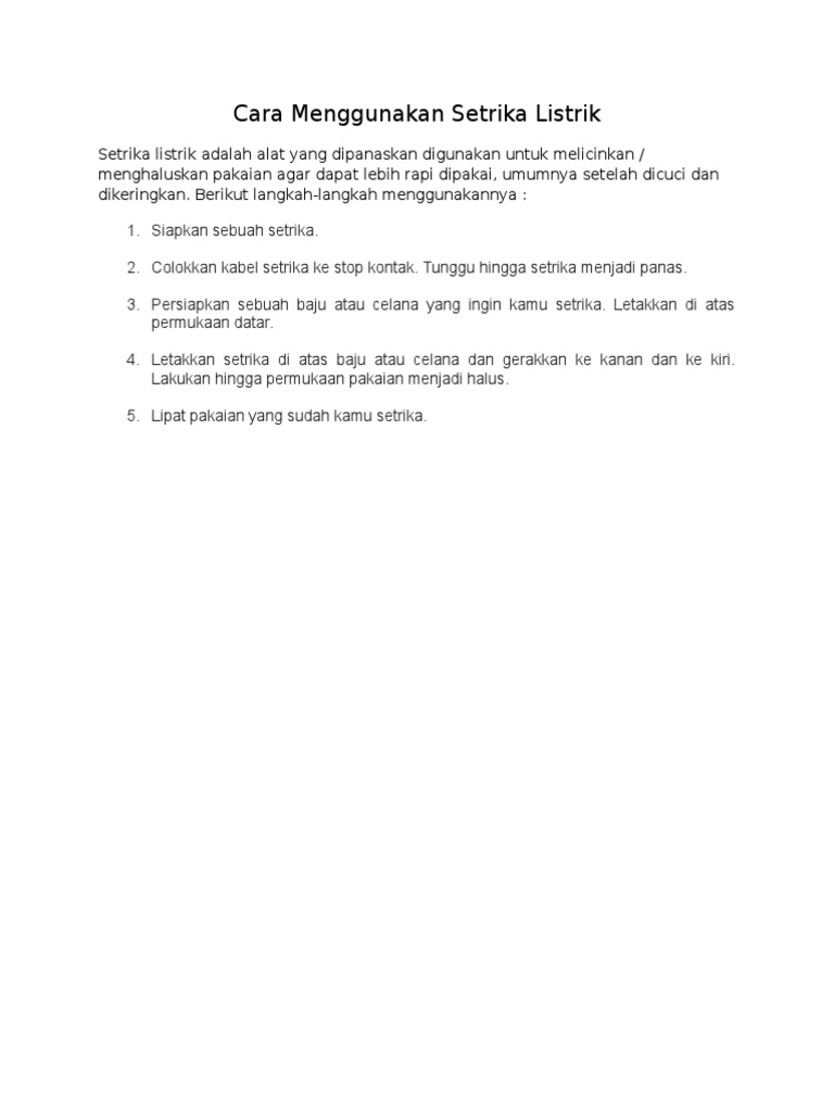 Teks Prosedur Cara Menggunakan Setrika Listrik - Terkait Teks