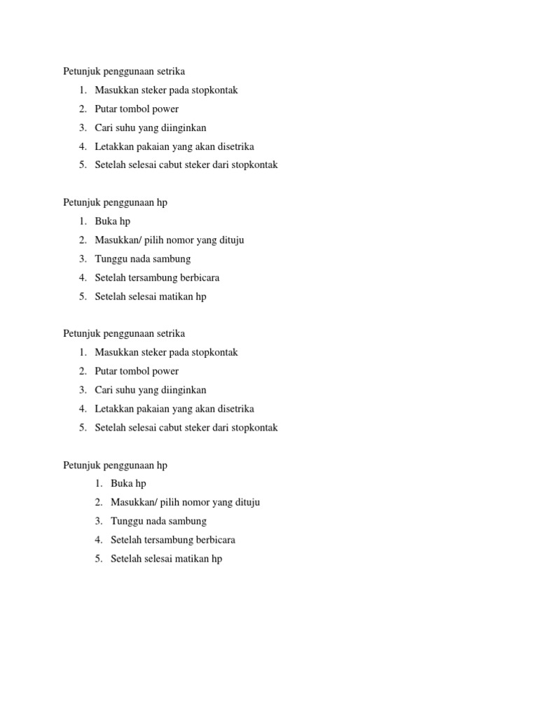 Tulislah susunan petunjuk menggunakan setrika yang padu - Brainly.co.id