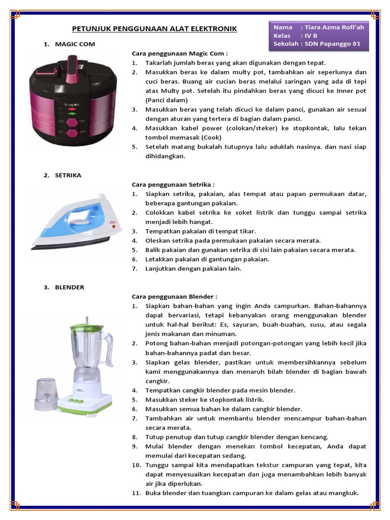 Petunjuk Penggunaan Peralatan Elektronik Setrika – Rajiman