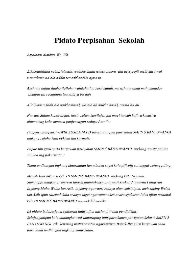 Contoh Pidato Bahasa Jawa Tentang Perpisahan Singkat