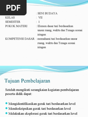 MODUL III SENI BUDAYA KB 3: RAGAM GERAK, MUSIK IRINGAN TARI, LEVEL, D…