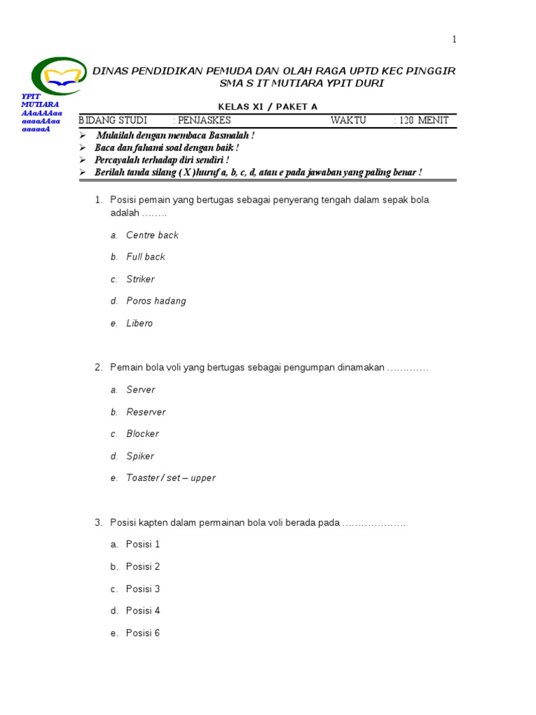 posisi kapten dalam permainan bola voli berada pada A.posisi 1 B …