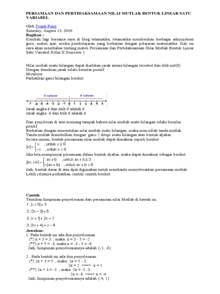 Persamaan Dan Pertidaksamaan Nilai Mutlak Bentuk Linear Satu Variabel