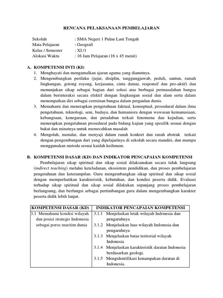 RPP Geografi Kelas 11 Revisi 2017 Kurikulum 2013 Semester 1,2 …
