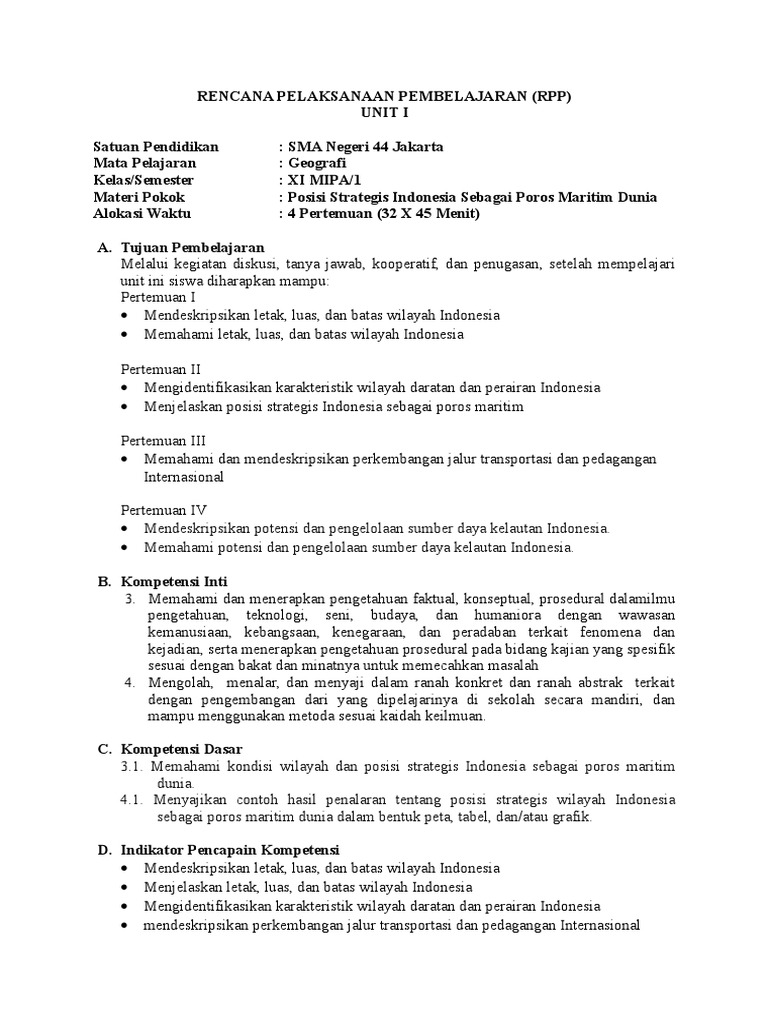 RPP XI 3.1 Wilayah dan Posisi Strategis Indonesia Sebagai Poros …