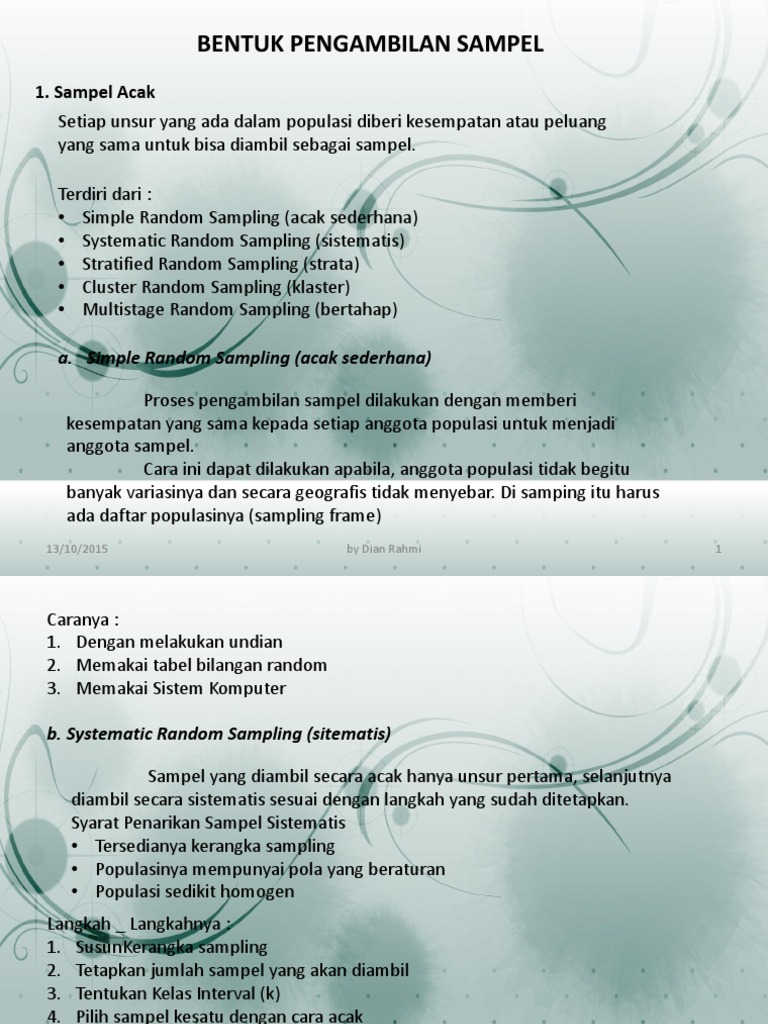 Sebutkan Cara Pengambilan Sampel Penelitian Dengan Sampel Random …