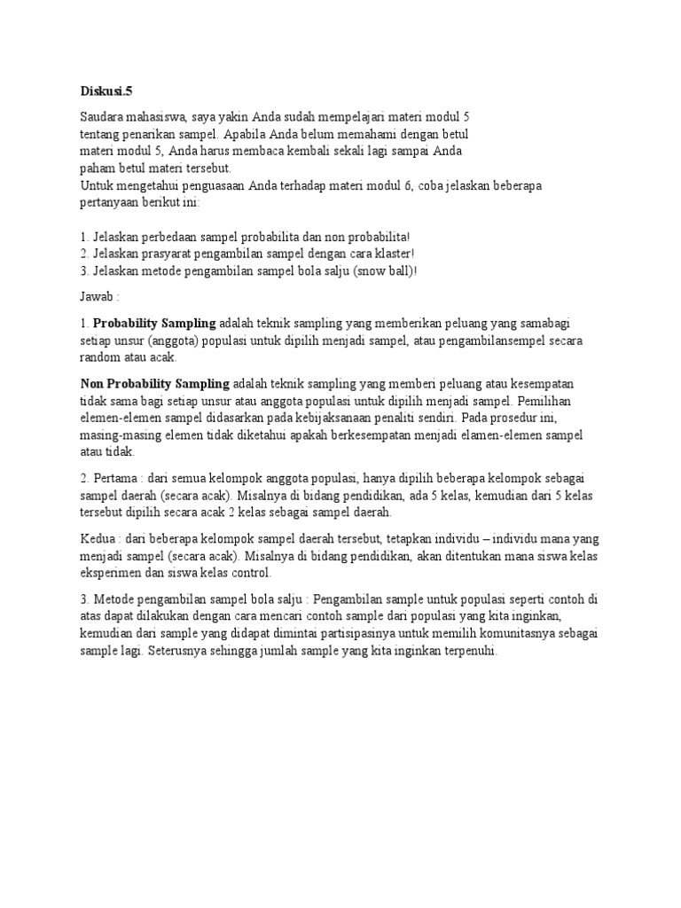 diskusi 5.docx - 1 Jelaskan perbedaan sampel probabilita dan non …