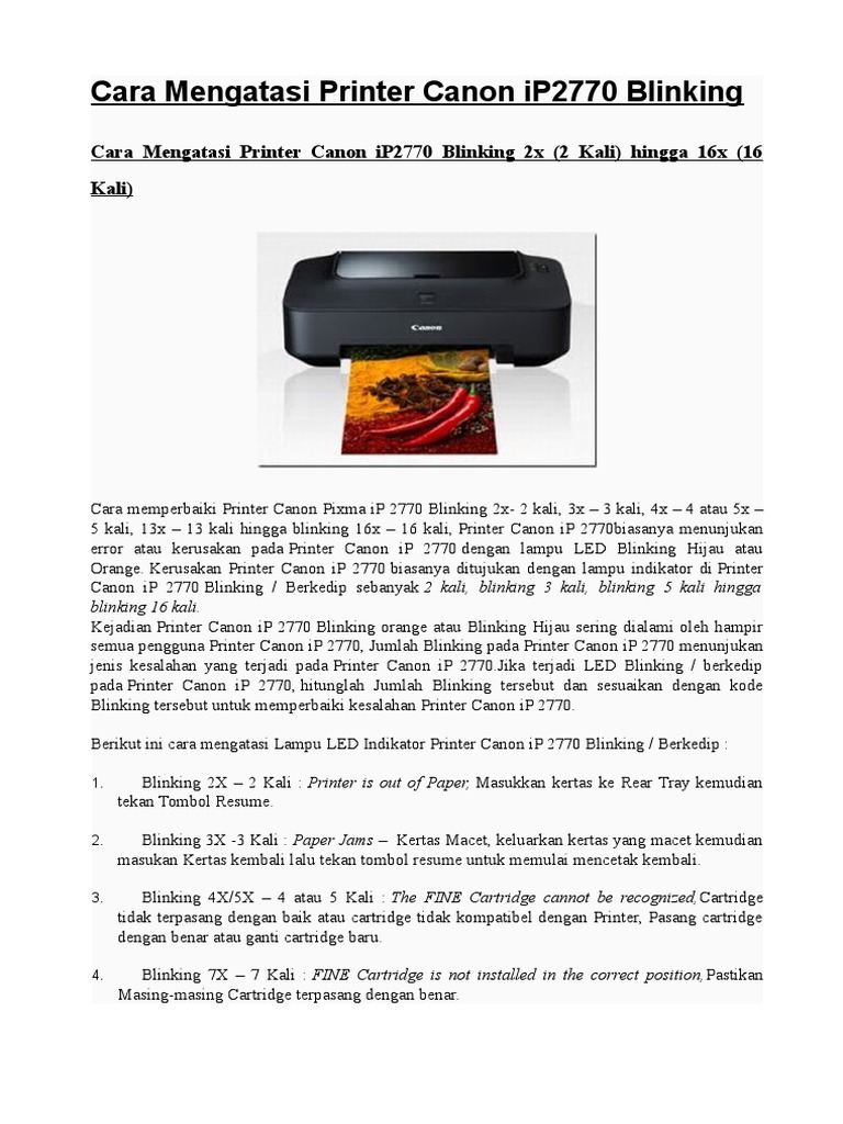 Cara Memperbaiki Printer Canon Ip2770 Lampu Kedap Kedip - Bisabo Channel