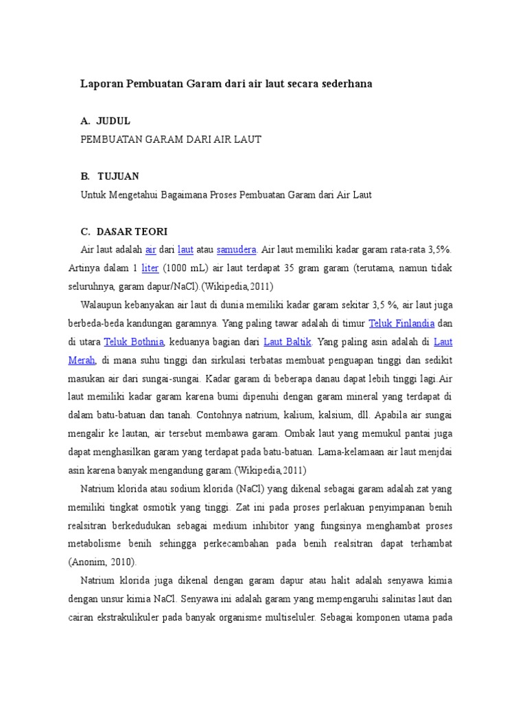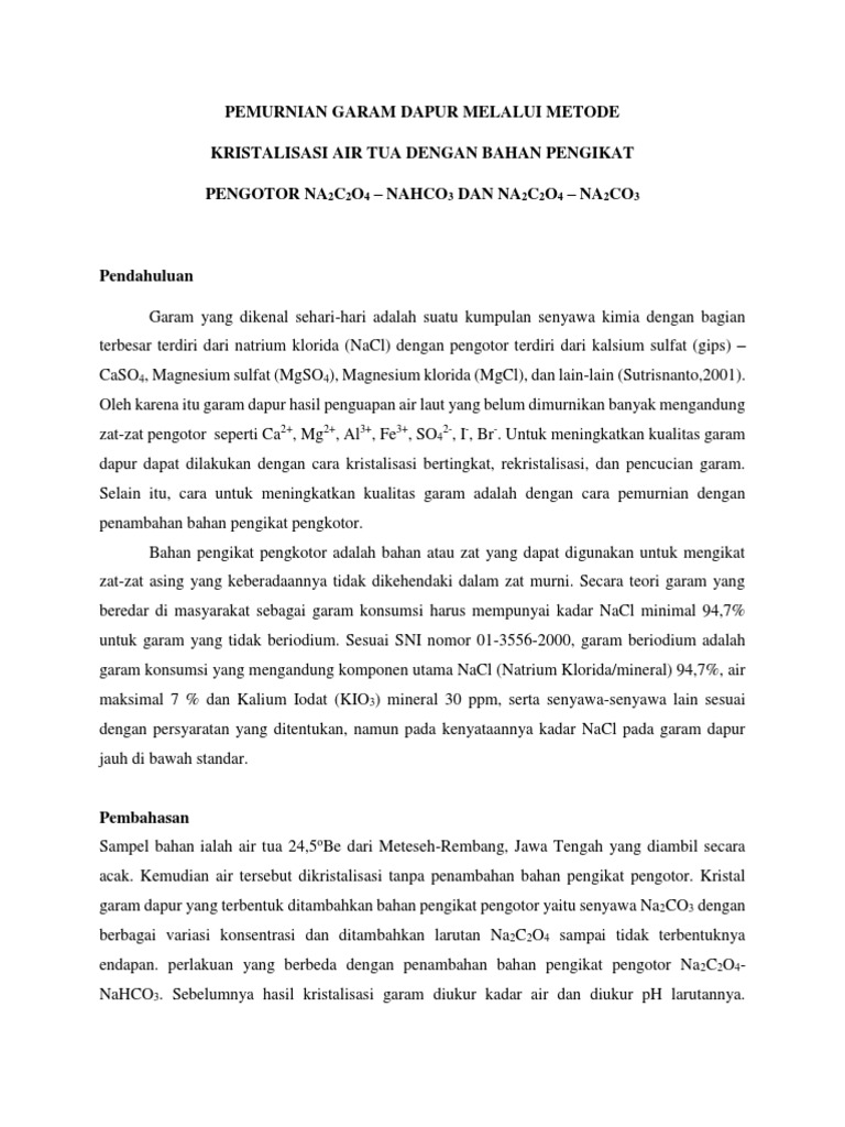 DOC) Teknologi Pembuatan Garam Dapur (NaCl) | Adela Putri - Academia.edu