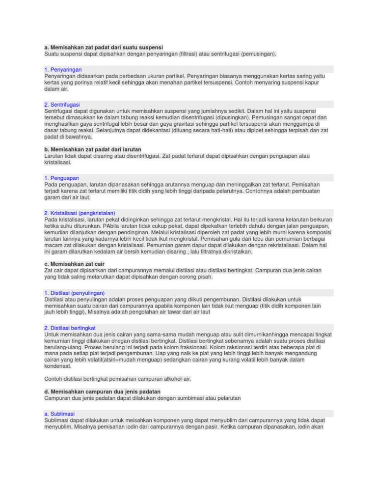 1. Pemisahan campuran yang didasarkan pada perbedaan titik didih unsur penyusunnya adalah…. A. - Brainly.co.id