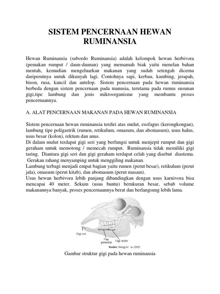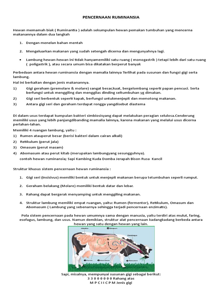 Sistem Pencernaan Pada Hewan Ruminansia (Pemamah Biak) Beserta …