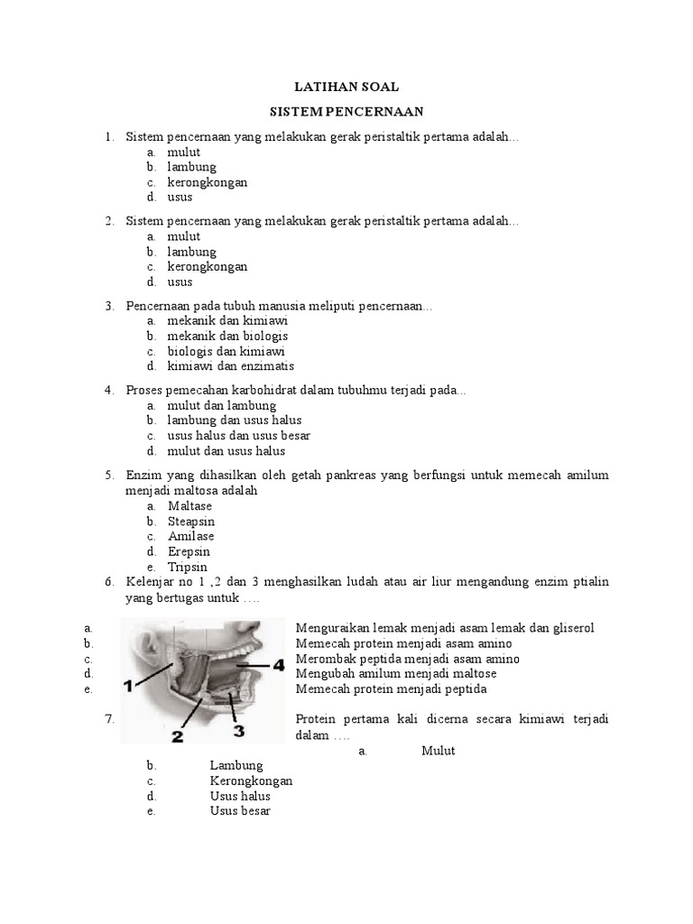 DOC) Soal Pilihan Ganda sistem Pencernaan | Shinta Elvira …