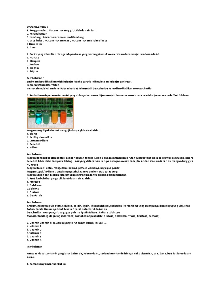 Soal Biologi : Sistem Pencernaan & Kunci Jawaban lengkap - Muttaqin id