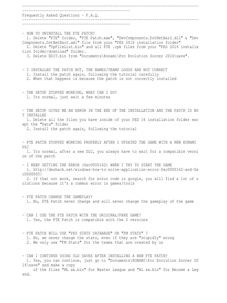 PTE Patch F.A.Q..txt | Intellectual Works | Digital & Social Media