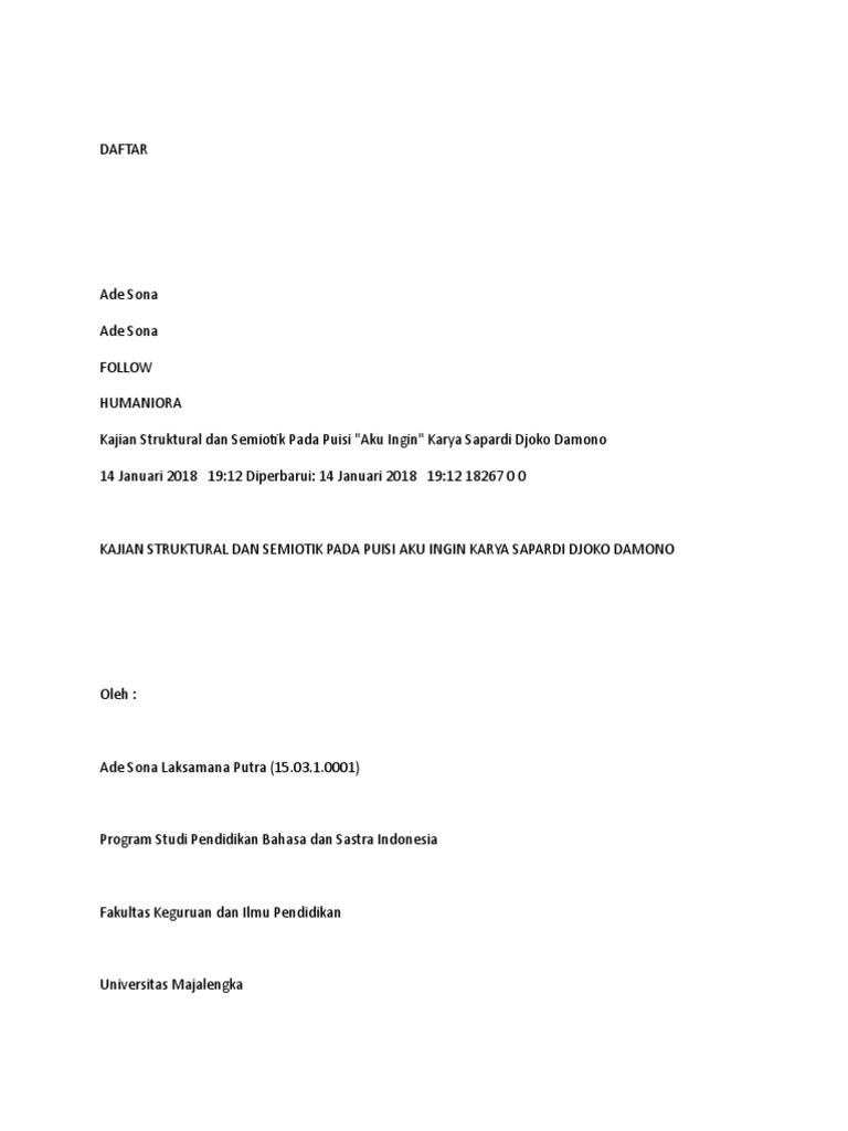 puisi “Aku Ingin"Sapardi Djoko Damono Aku ingin mencintaimu dengan …