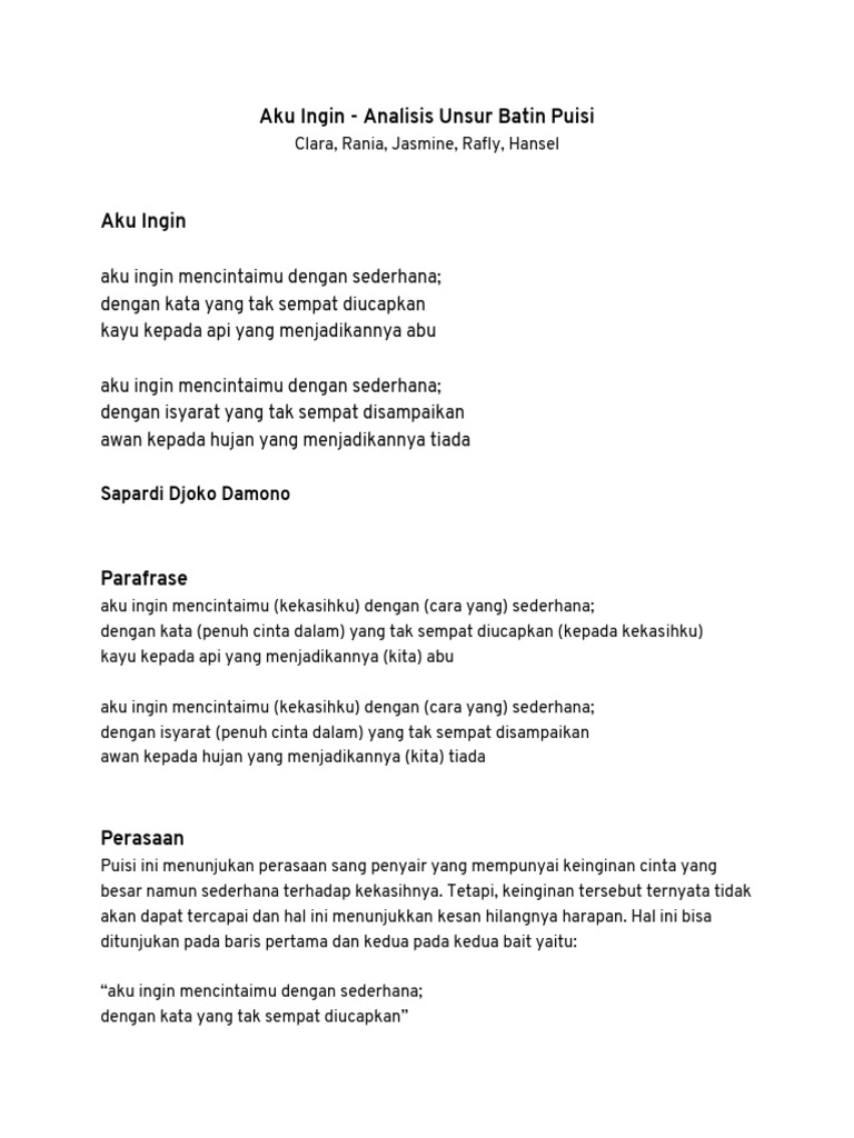 Pleasebantu dong!Mau dikumpul sekarangAnalisis puisi Aku ingin …
