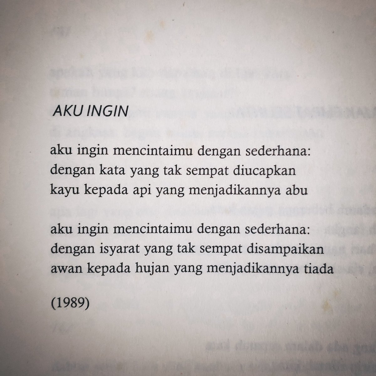 Biyaaa puisi yg “aku ingin” nya sapardi djoko damono jg sedih …