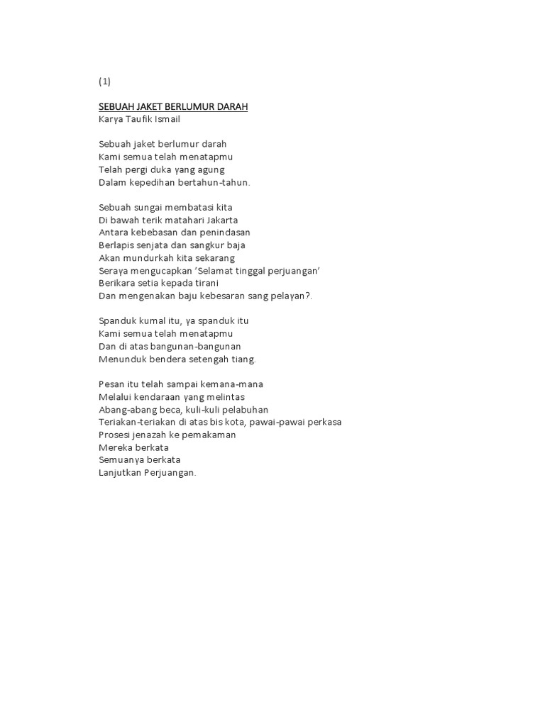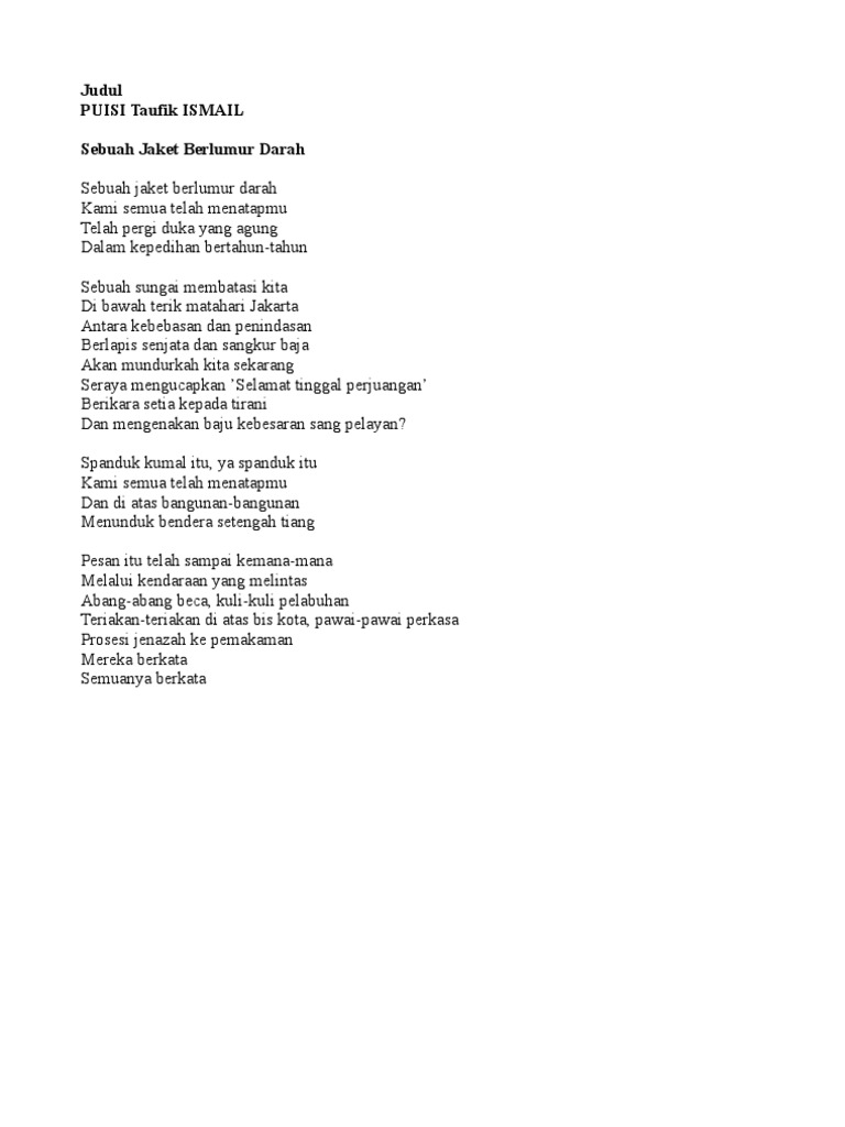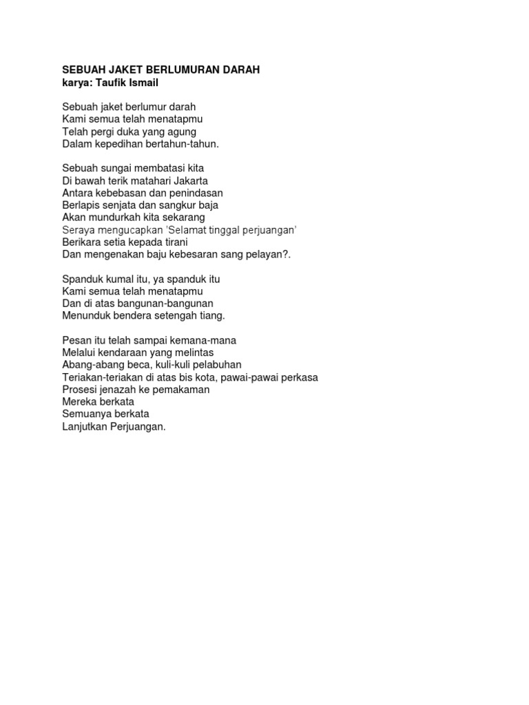Download Puisi Sebuah Jaket Berlumur Darah Taufiq Ismail Mp3 Mp4 …