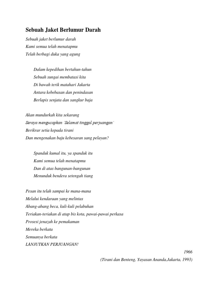 Analisis Puisi Sebuah Jaket Berlumuran Darah Karya Taufik Ismail …