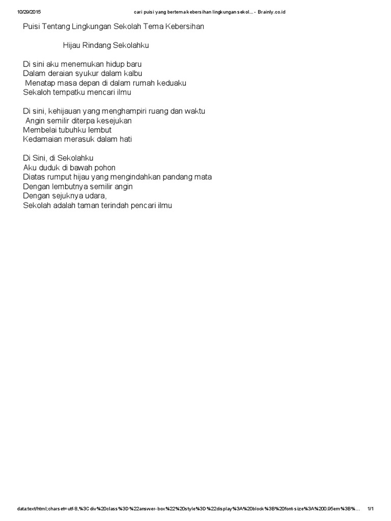 buatlah puisi tentang sekolahku yang bersih - Brainly.co.id