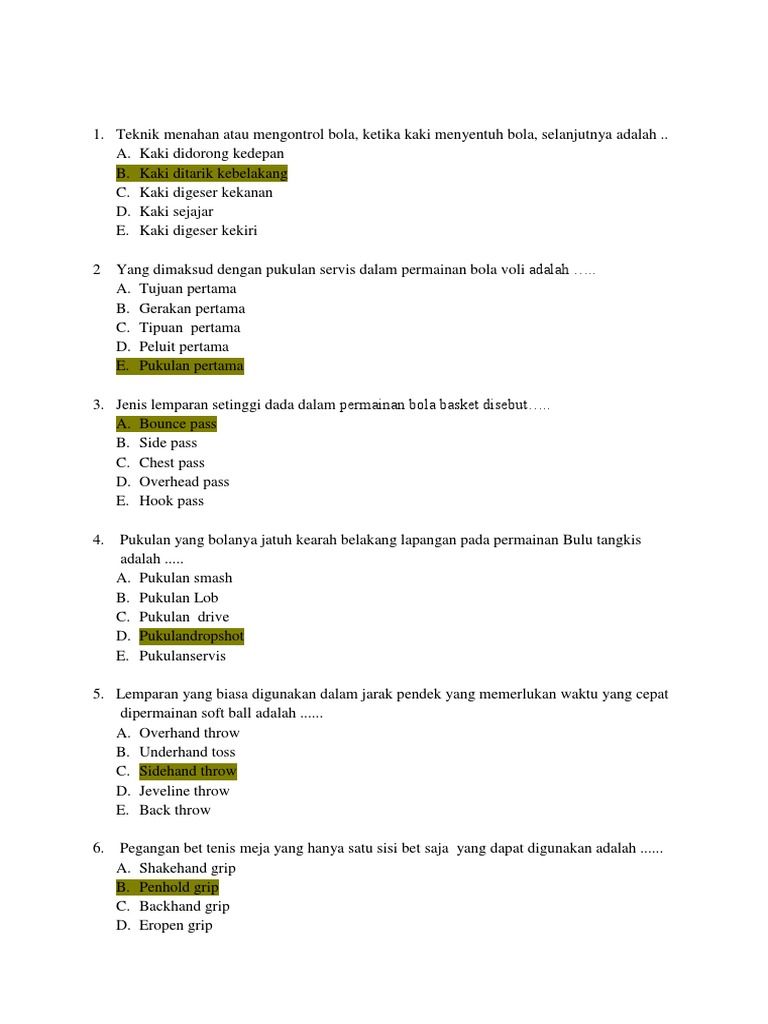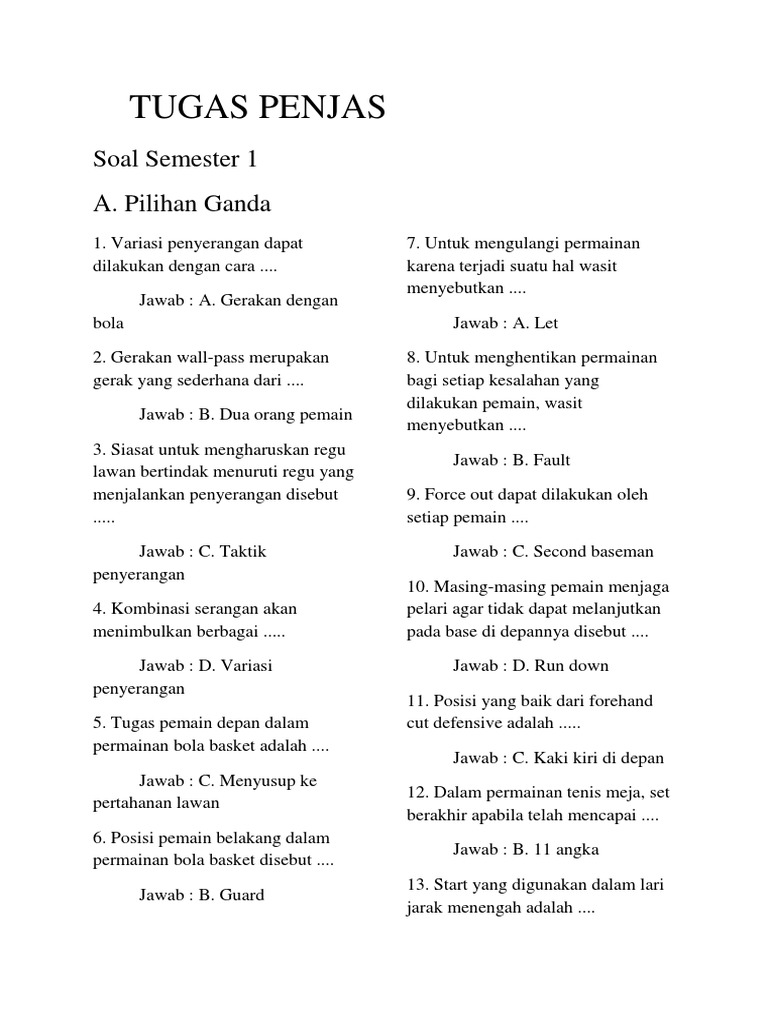 Soal Uts Pjok Kelas x1