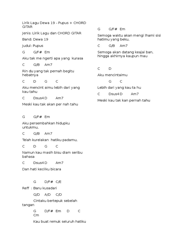 Chord Gitar - Pupus, Dewa 19 - Wattpad