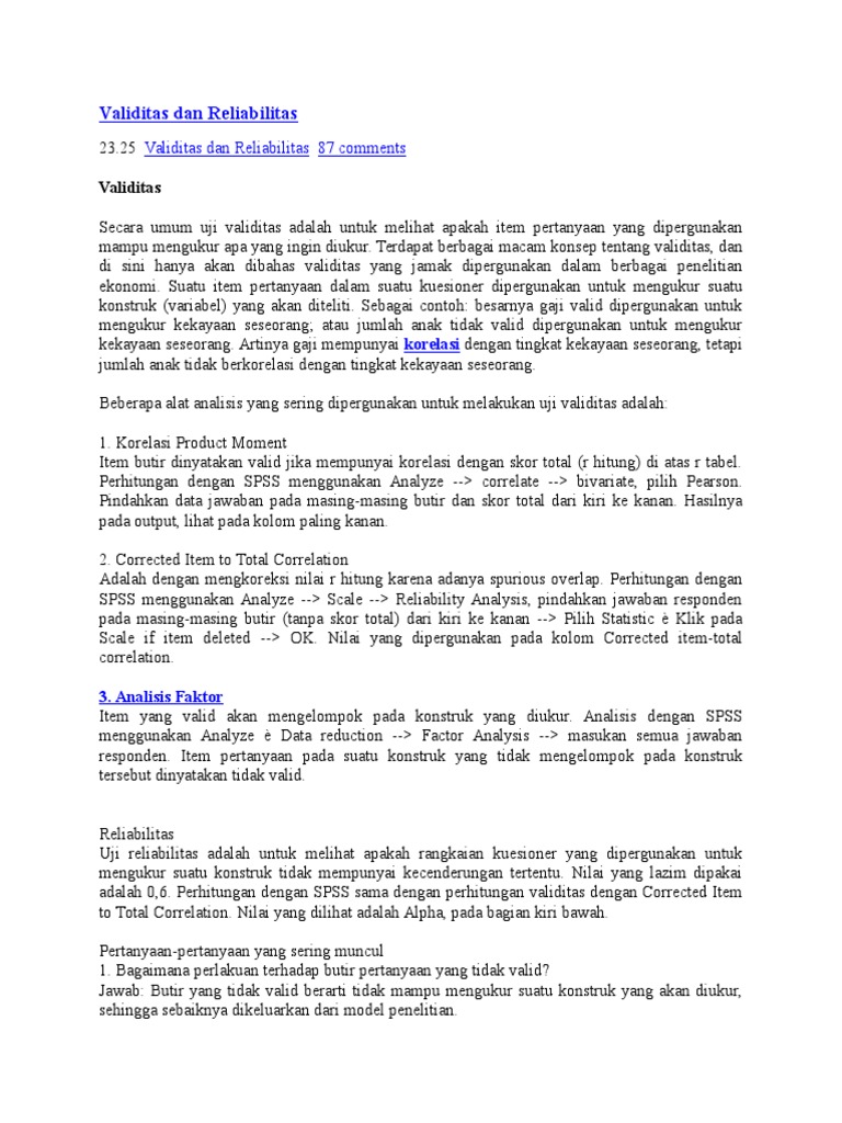 Cara Menghitung Uji Validitas Dan Uji Reliabilitas Instrumen …