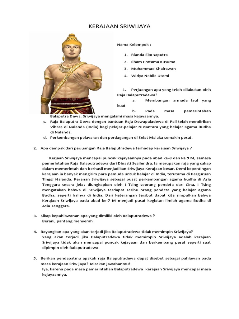 Ceritakan secara singkat tentang kerajaan Sriwijaya dan Raja …