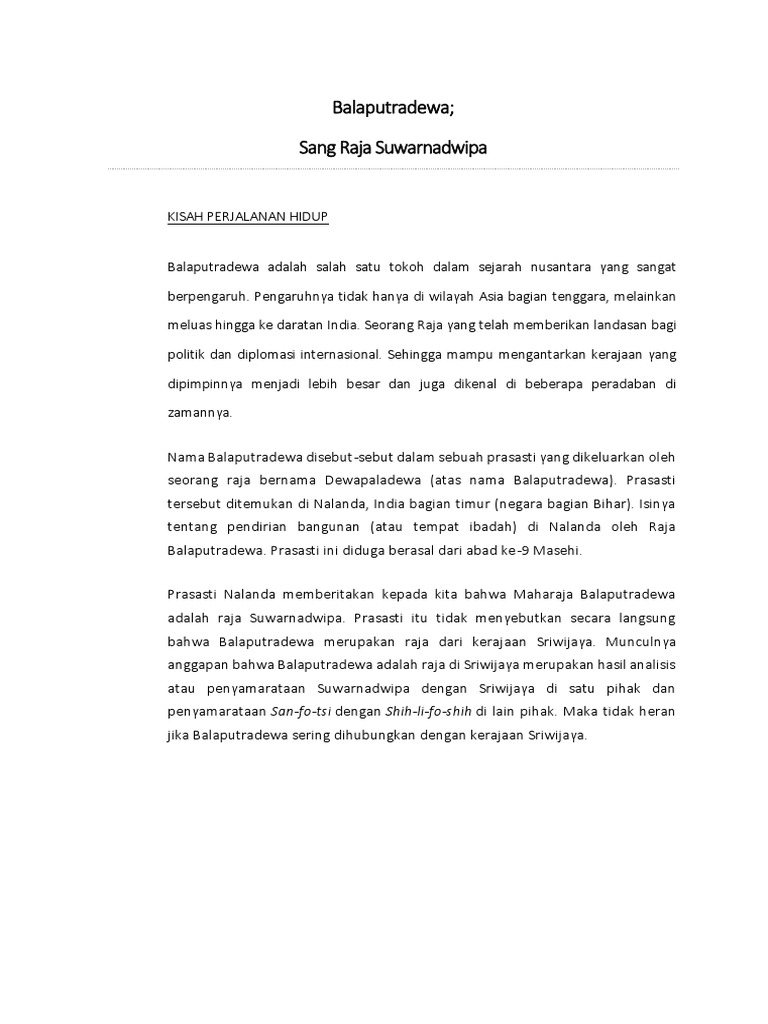 Balaputradewa; Sang Raja Suwarnadwipa – Dgraft Outline