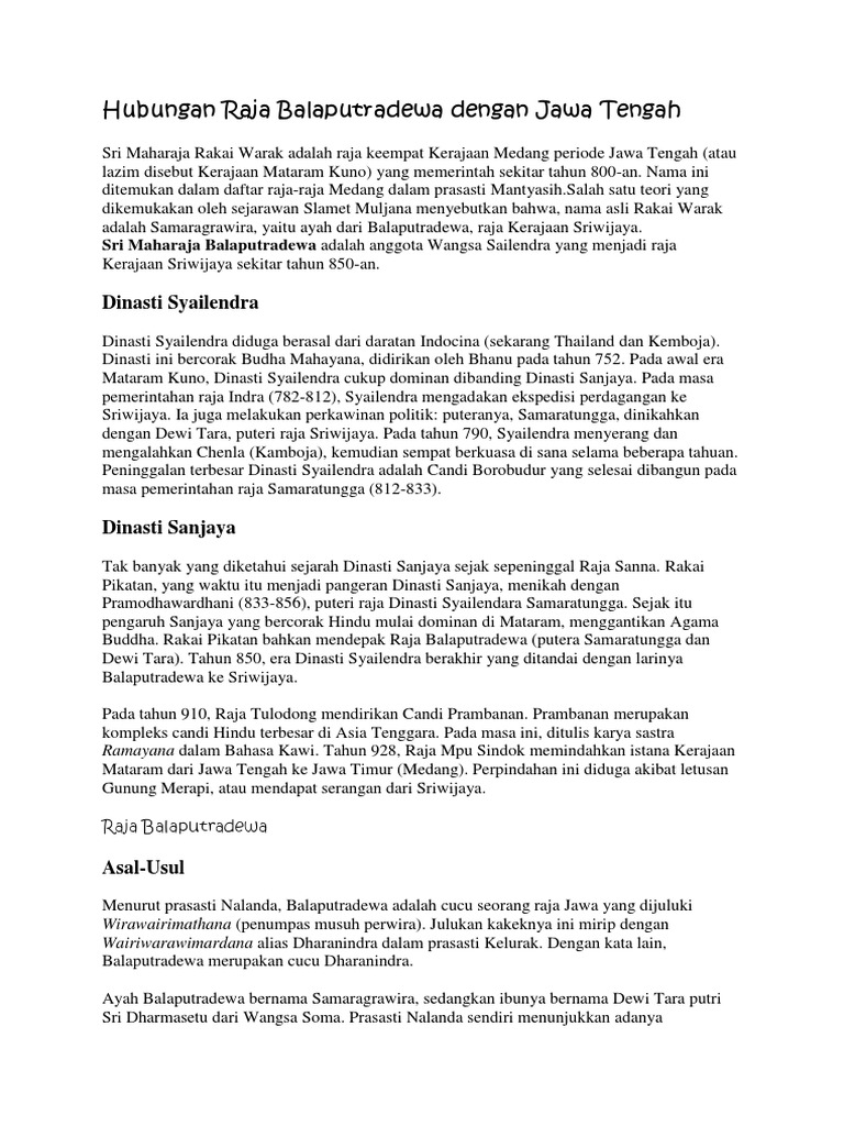 Hubungan Raja Balaputradewa dengan Jawa Tengah