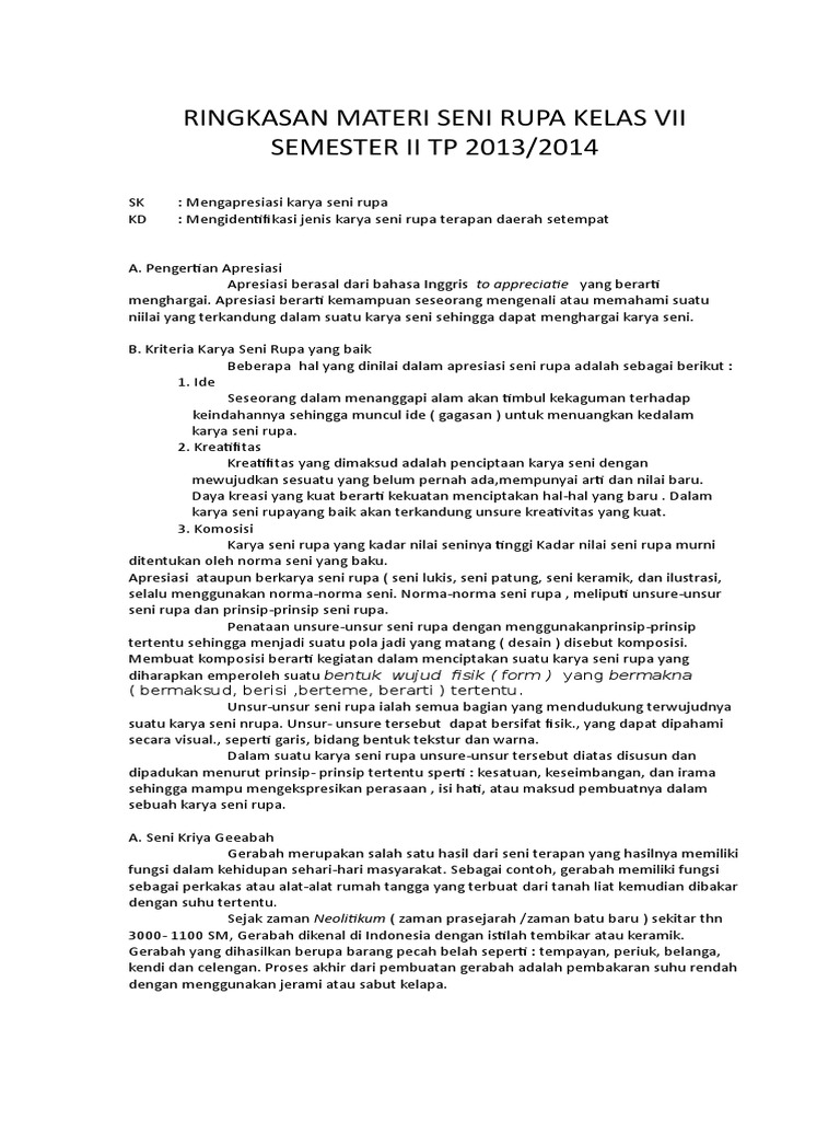 Ringkasan Materi Seni Rupa Kelas Vii Semester II Tp 2013