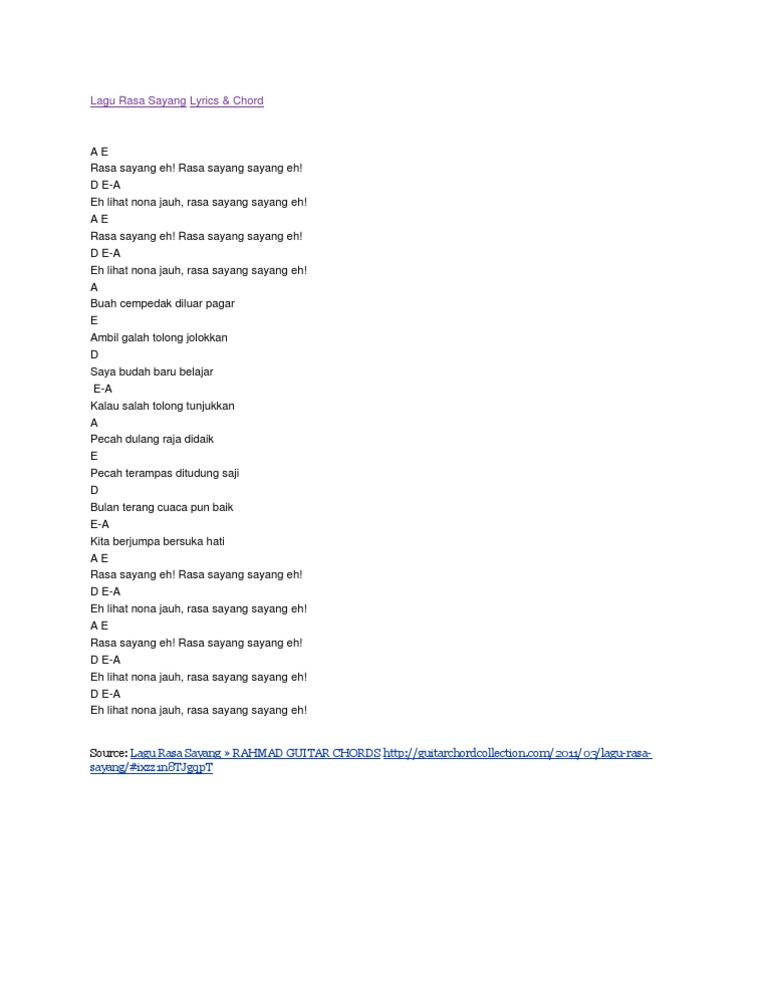 Guitar chords collection - folk songs chord rasa sayang | Facebook