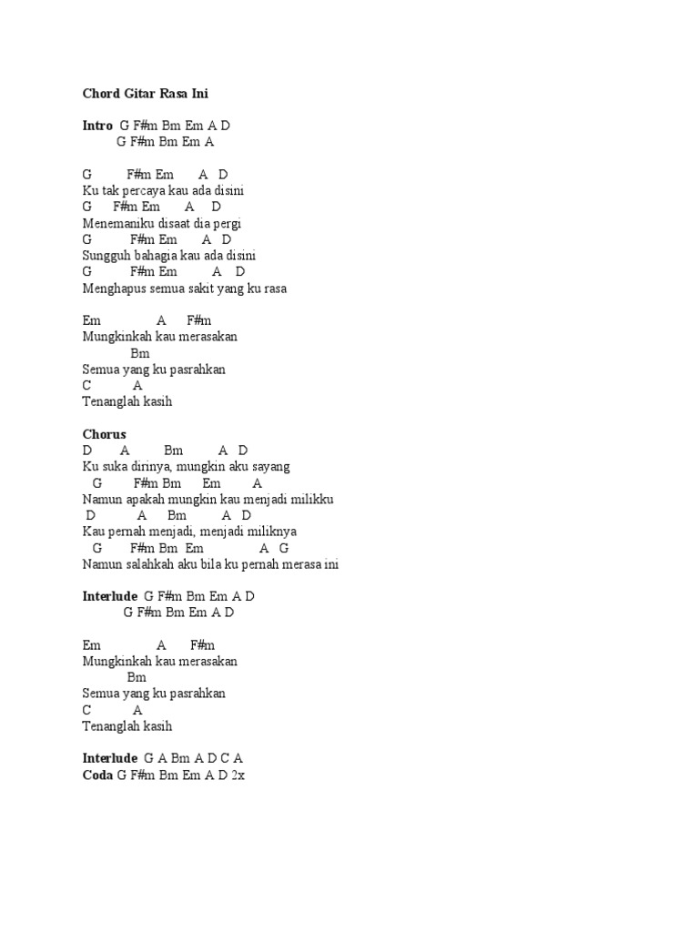 Chord Gitar Rasa Ini