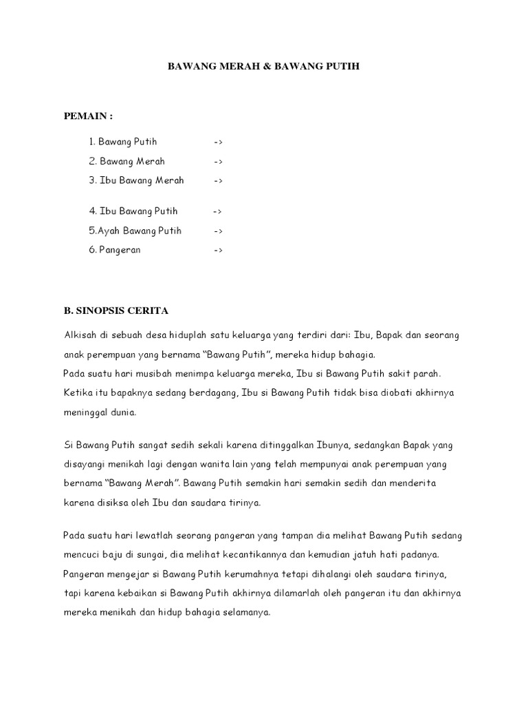 DOC) Sinopsis Drama Bawang Merah & Bawang Putih | Yulha Nanta …