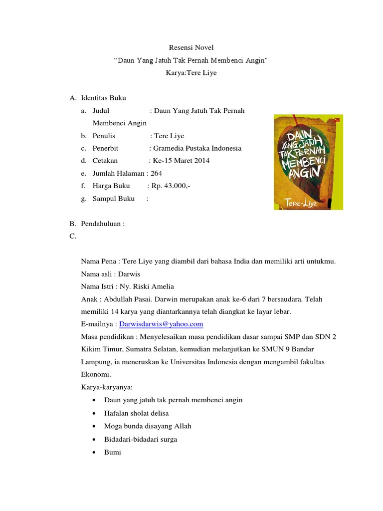 RESENSI NOVEL DAUN YANG JATUH TAK PERNAH MEMBENCI ANGIN Karya Tere Liye