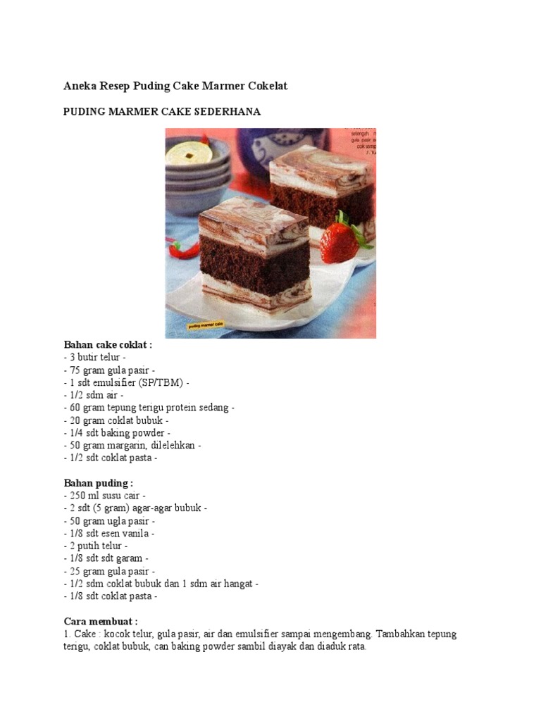 Resep Aneka Cokelat: Aneka Resep Puding Cake Marmer Cokelat