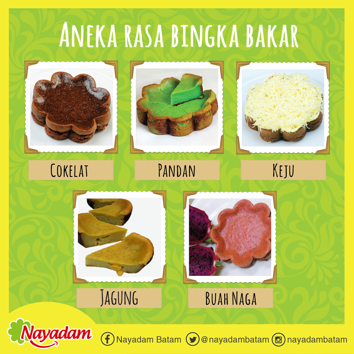 Nayadam Batam على تويتر: “Ini dia aneka jenis Bingka Bakar Nayadam. Yuk di pilih. Untuk Delivery Order Hubungi 0812-7611-1150 @annastasyaa13… "