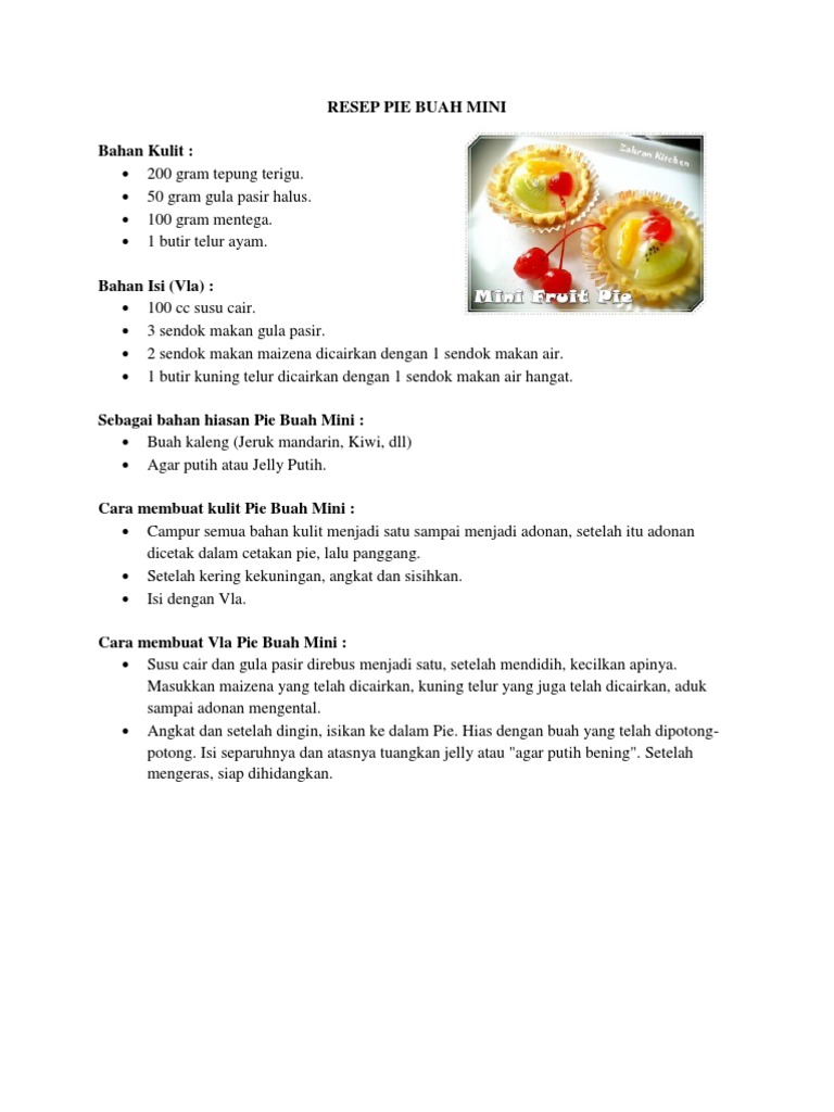 Resep Pie Buah Praktis Sederhana : Bahan-bahan - Cara membuat …