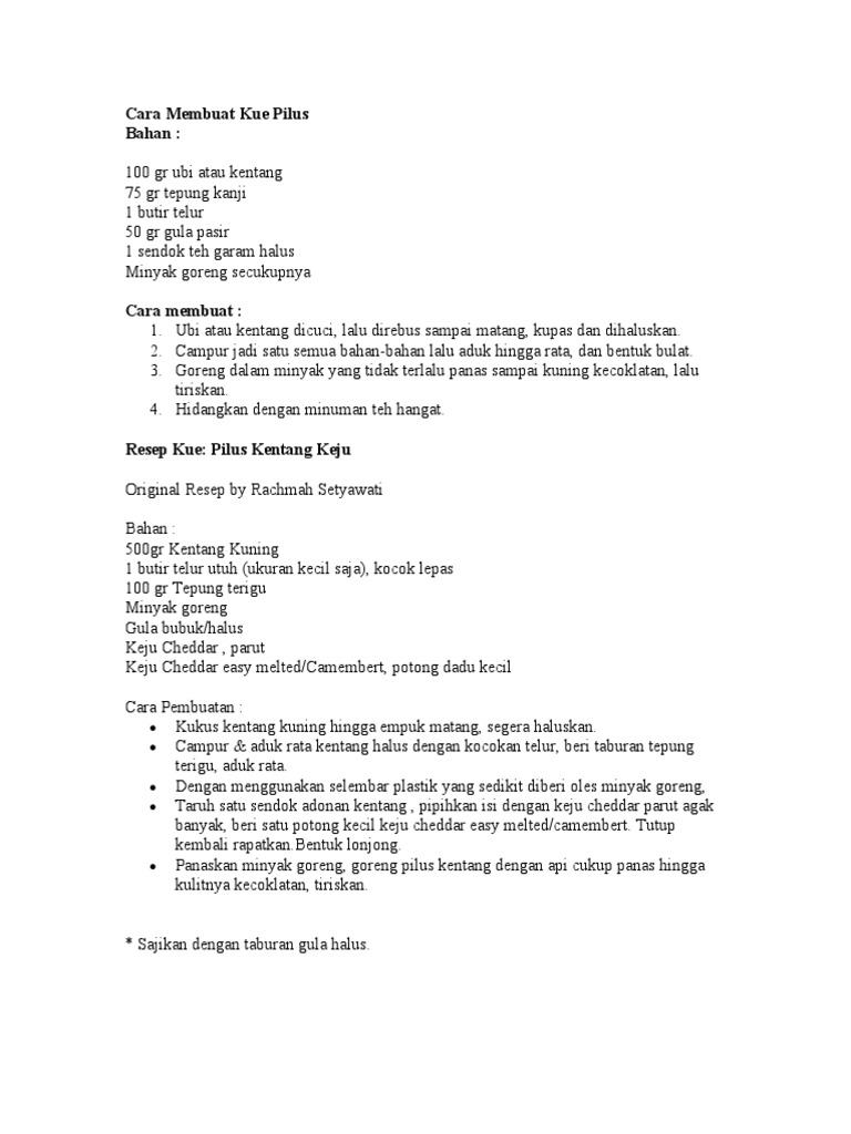 Resep Dari: Resep Cara Membuat Pilus Kentang Enak