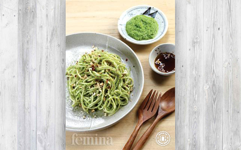 Pasta Bersaus Pesto Hijau yang Segar Bisa Dinikmati di Sini