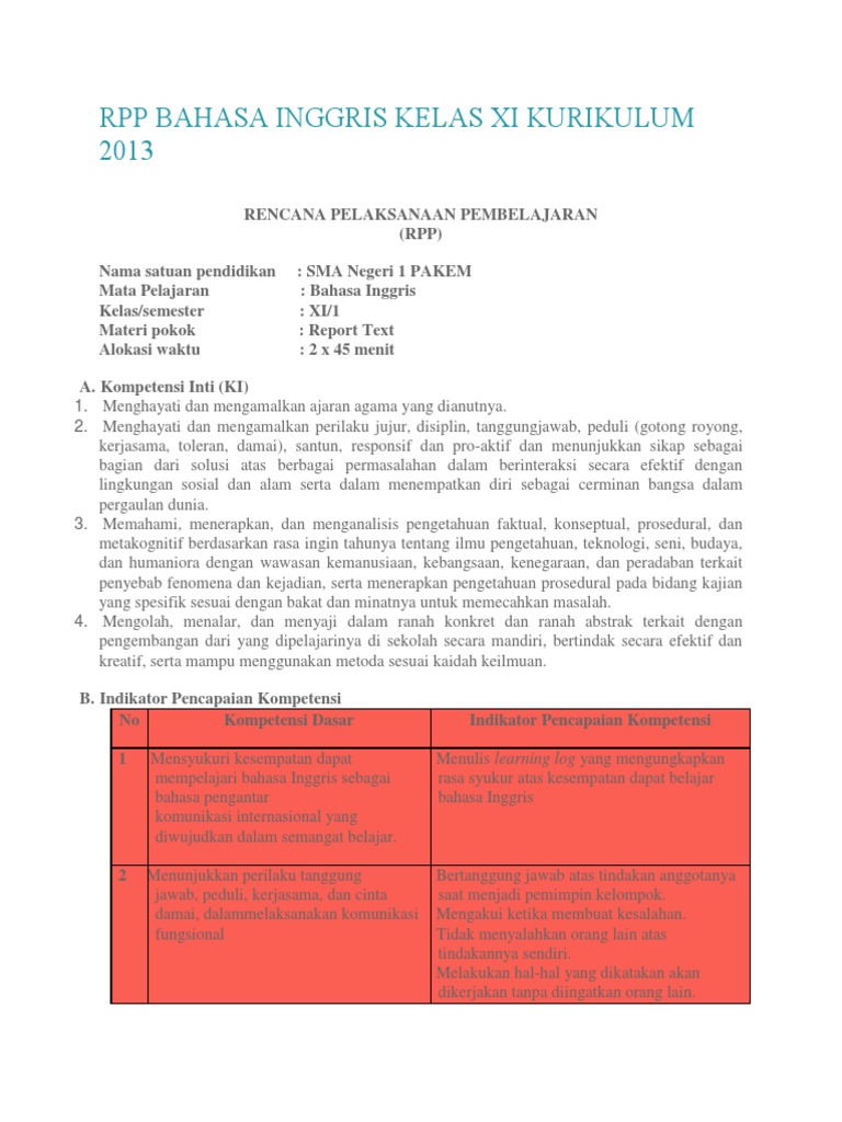DOC) RPP BAHASA INGGRIS KELAS XI KURIKULUM 2013 | Ima Nurhalimah - Academia.edu