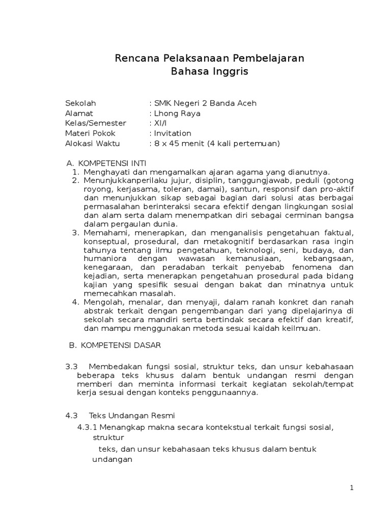 Rpp Bahasa Inggris Kurikulum 2013 Sma – Corona Todays
