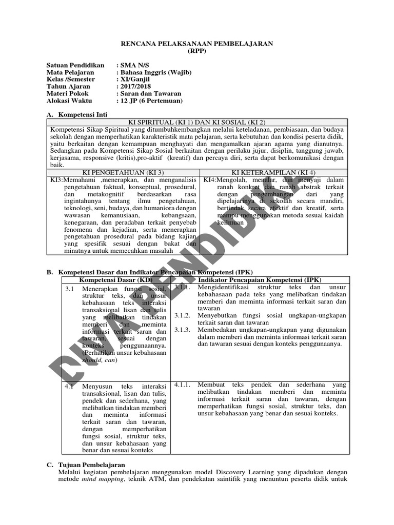 RPP Bahasa Inggris SMA K-13 (Wajib) Research Papers - Academia.edu