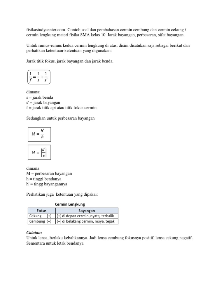 Persamaan Cermin Cekung Dan Rumus Pembesaran Bayangannya? - Brainly.co.id