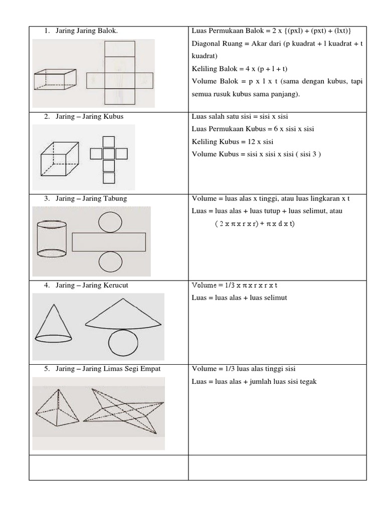 Jaring Dan Rumus Bangun Ruang