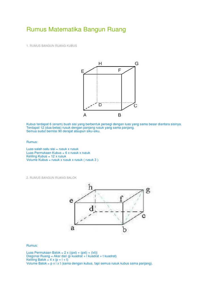 Rumus Matematika Bangun Ruang