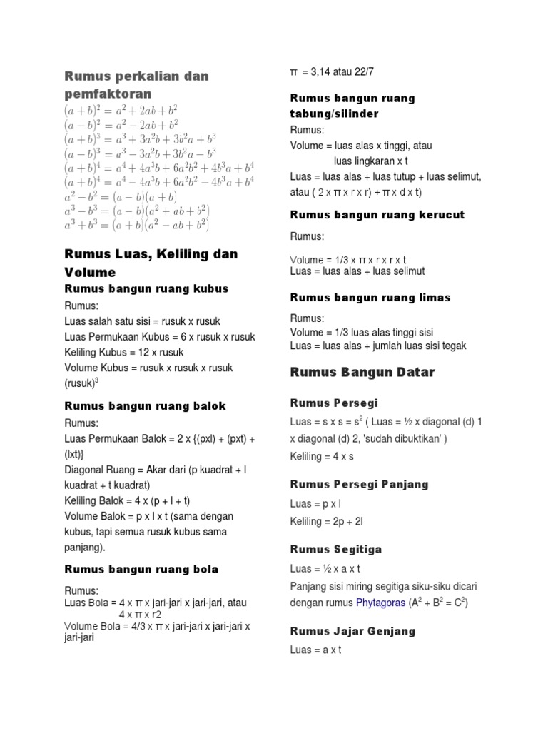 DOC) Rumus rumus matematika | Ferawati Nurma - Academia.edu