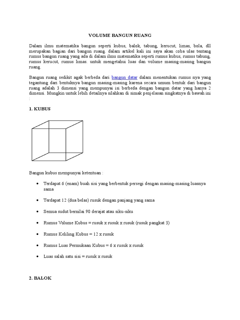 Rumus Volume, Luas Permukaan Dan Sifat Bangkit Ruang – www.codeaid.net